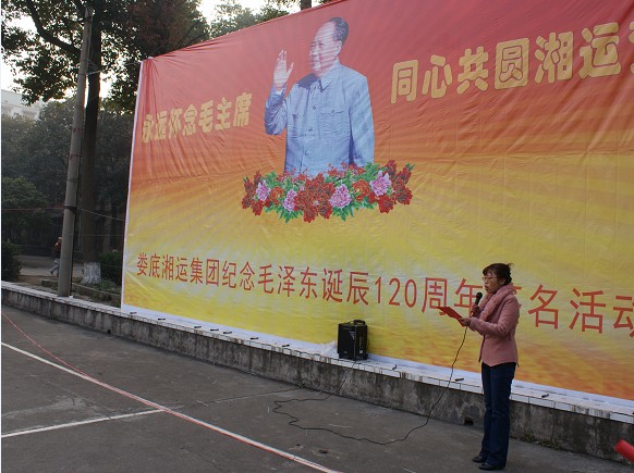 今年是毛澤東主席誕辰120周年,是公司深入學(xué)習(xí)貫徹黨的十八屆三中全會精神,踏上新征程的開局之年。12月24日上午9時許,公司在老機關(guān)院落籃球坪隆重舉行“永遠懷念毛主席、同心共圓湘運夢”紀(jì)念毛澤東誕辰120周年離退休老同志大型簽名紀(jì)念活動,緬懷先烈們的豐功偉績。公司婁底片離退休、 內(nèi)退、協(xié)保同志近四百人參加了此次活動。公司董事長兼總經(jīng)理彭瑞華、監(jiān)事會主席吳一江等公司領(lǐng)導(dǎo)親臨活動現(xiàn)場。
