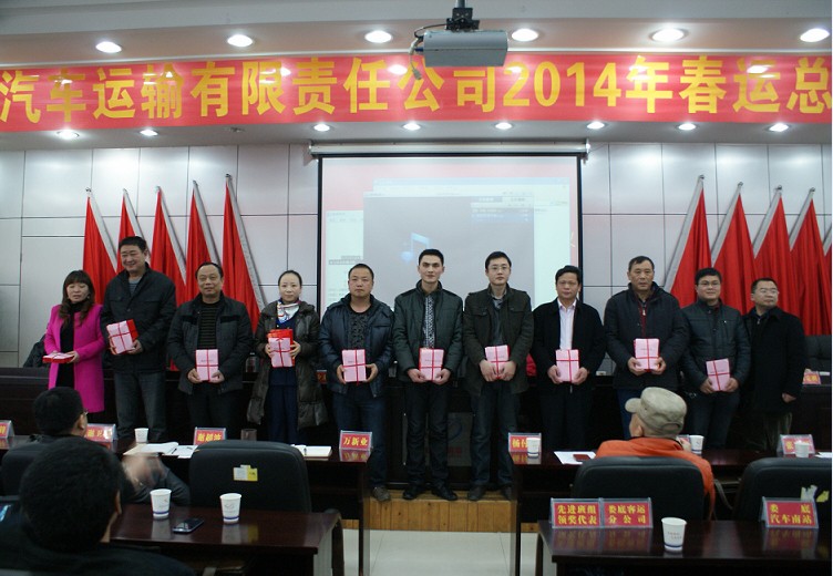 2014年春運(yùn)總結(jié)表彰會(huì)議先進(jìn)單位代表上臺(tái)領(lǐng)獎(jiǎng)