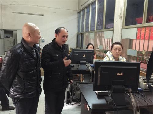 公司董事兼副總經(jīng)理陳夢(mèng)麟(左二)、總經(jīng)理助理、婁底汽車站經(jīng)理?xiàng)罡渡ㄗ笠唬┮暡鞀涞灼囌韭?lián)網(wǎng)售票工作