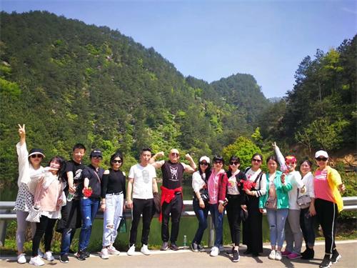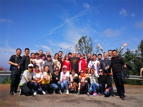 登高遠眺,是無與倫比的美麗,像是人間仙境,山上的霧氣時升時降,所有的美景盡收眼底,天空格外的藍,飛機飛過時,又感覺觸手及可了。在歡快的合影后,準(zhǔn)備下山了,大家手牽著手,齊聲歡唱“團結(jié)就是力量,團結(jié)就是力量,這力量是鐵,這力量是鋼……”一路歌聲,一路歡笑,一路汗水,一路幸福!